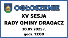 Sesja Rady Gminy Dragacz dostępna pod linkiem: TRANSMISJA Początek sesji o godzinie 13:00 dnia 30.09.2025 r.
