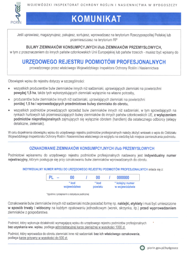 Komunikat - Urzędowego Rejestru Podmiotów Profesjonalnych