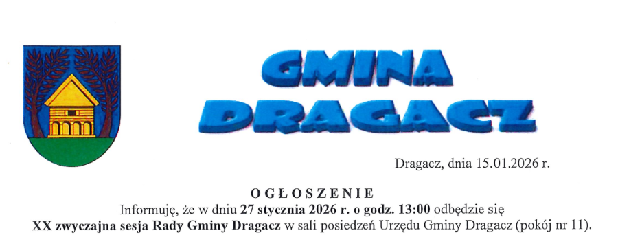 XX Sesja Rady Gminy Dragacz - 27 stycznia 2026 r.